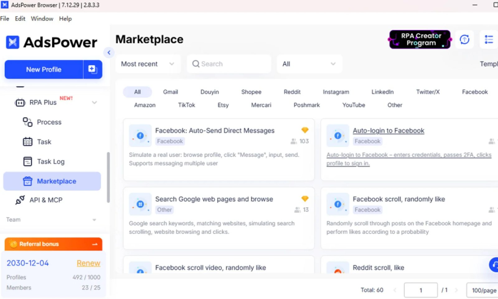 Um dos maiores pontos fortes do AdsPower reside na sua capacidade de suportar o rápido dimensionamento dos negócios sem exigir aumentos proporcionais no esforço manual. A plataforma equipa as equipes com ferramentas de automação poderosas que reduzem drasticamente as cargas de trabalho repetitivas e eliminam o risco entre contas.