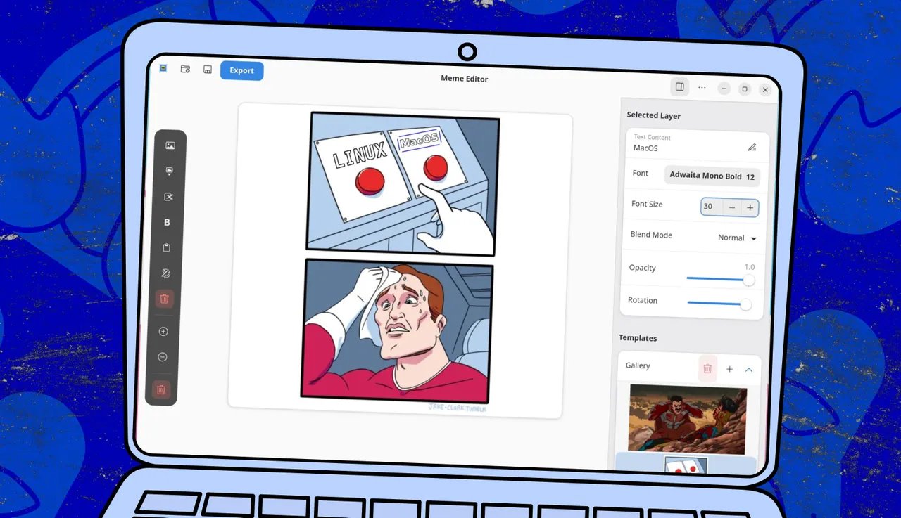 - Se você deseja criar memes, o Linux possui um aplicativo para isso.