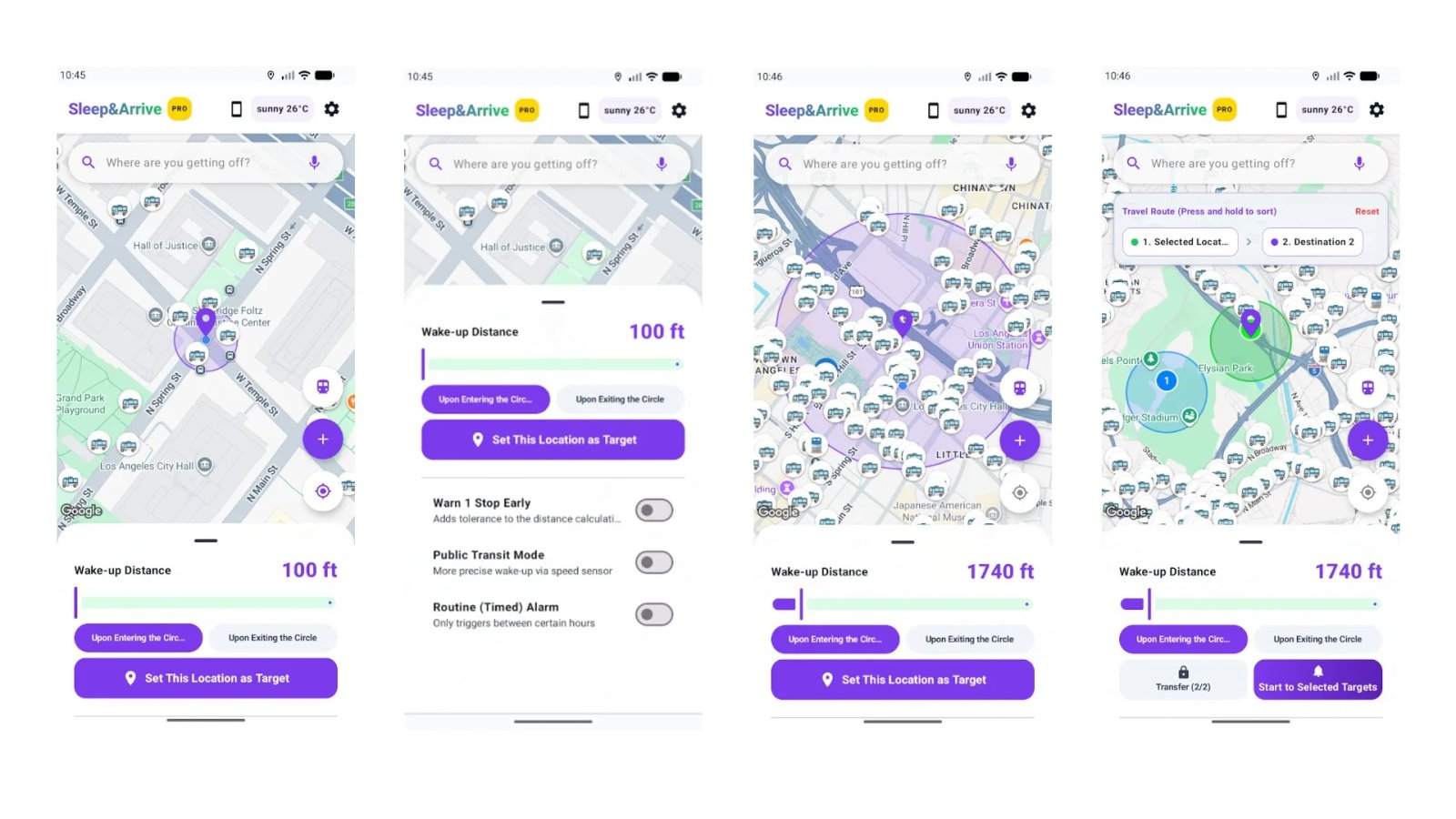 O principal apelo aqui é o controle. Sleep&Arrive permite definir um raio de despertar em torno de sua parada, o que significa que você pode escolher um aviso mais rígido para uma curta viagem de ônibus ou mais espaço para respirar para uma viagem de trem mais longa.