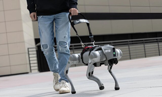 Usando GPT-4 com comandos de voz, o cão-robô alimentado por IA ganha capacidades de conversação muito mais fortes. A configuração não consiste apenas em levar o usuário de um ponto a outro. Antes mesmo de a viagem começar, o robô pode descrever as rotas possíveis e os tempos estimados de viagem. Durante a viagem, oferece o que os pesquisadores chamam de “verbalização de cena”, fornecendo feedback falado em tempo real sobre o ambiente e os obstáculos à frente.