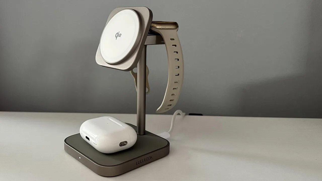 É onde Carregador Ultra-Rise Qi2 da Lululook Como muitos carregadores de suporte no mercado, ele tem um carregador MagSafe móvel elevado para um iPhone, um carregador Apple Watch embutido atrás de onde um telefone ficaria e, na base, um carregador sem fio para AirPods. É uma configuração bastante comum e certamente não é inovadora em termos de função.
