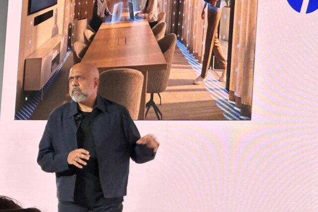 O chefe do HP IQ da HP, Imran Chaudhri, detalhou como o chatbot funcionará nos laptops da empresa. No momento, isso inclui apenas o EliteBook X. © Kyle Barr / Gizmodo
