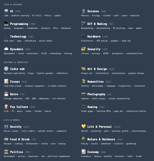 No fórum de discussão Hacker News, uma pessoa apontou que Kagi está limitando sua seleção a sites com feeds RSS que possuem postagens recentes, excluindo sites exclusivos e de propósito único ou páginas experimentais de serem incluídos na coleção de Kagi. Outro ficou frustrado quando se deparou com um suposto site de “Web Pequena” que parecia suspeito de ter foi escrito com IA.