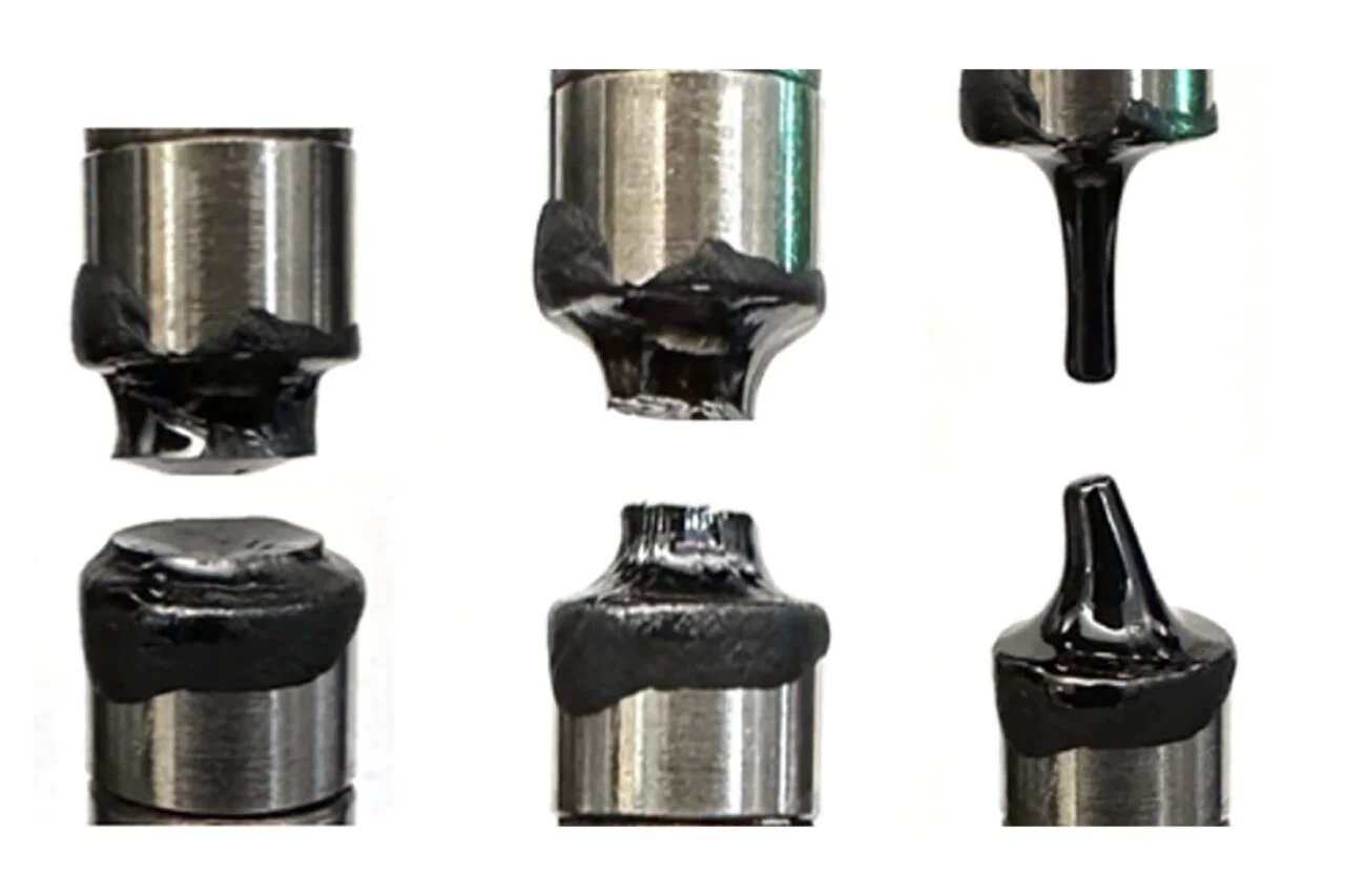 Curiosamente, os líquidos mostraram um padrão consistente de alongamento até atingirem um ponto de “tensão crítica”, no qual simplesmente se partiram ao meio. Esse limite media até 2 megapascais, o que equivale à “tensão que você sentiria de forma desagradável se empurrasse um saco de roupa suja contendo 10 tijolos de uma borda e o cordão ficasse preso na unha”, explicaram.