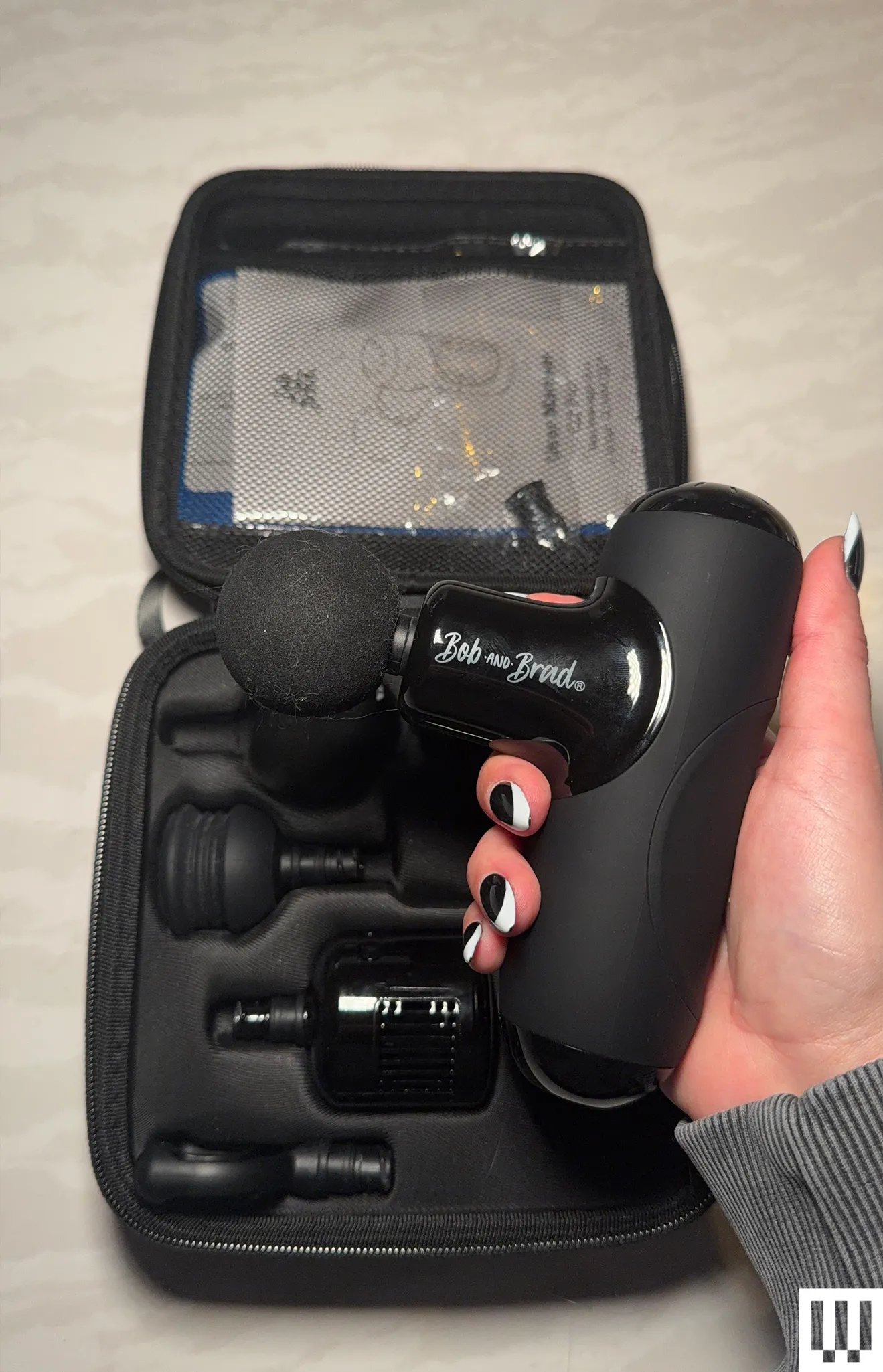 Mini pistola de massagem Bob e Brad Q2 por US $ 70: A Q2 Mini Massage Gun é uma alternativa sólida para o Theragun Mini Plus, se você precisa de portabilidade, mas não quer pagar US$ 280. Pesando 1,5 quilo, é meio quilo mais leve que o Mini Plus, que aprecio no trajeto, onde cada quilo é importante. Você também recebe cinco acessórios que cabem no estojo de viagem incluído.
