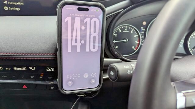 Nas últimas semanas, tenho dirigido um carro alugado. O Mazda 3 é uma bela máquina, repleta de todos os equipamentos mais recentes. Mas me deparei com alguns problemas. O carregador sem fio integrado não é confiável e, quando funciona, é um dos carregadores sem fio mais lentos que já usei (acho que pode não gostar da capa do meu iPhone).