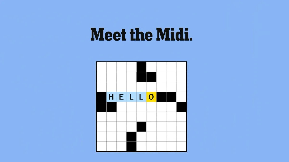 Como o nome “Midi” sugere, este é um jogo de palavras cruzadas de tamanho médio. Enquanto as Mini palavras cruzadas geralmente têm apenas 5 pistas transversais e 5 para baixo, o Midi é geralmente um quebra-cabeça de 9 por 9, às vezes até 11 por 11.