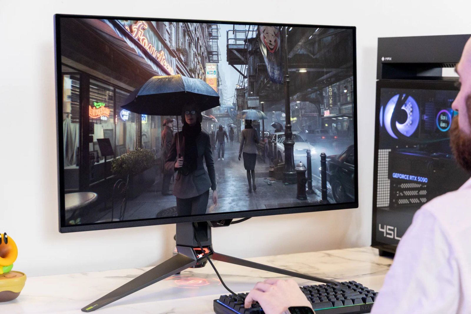 O Swift OLED suporta HDR10 regular e Dolby Vision para alta faixa dinâmica. Portanto, embora você descubra que os jogos ficam ótimos combinados com um PC para jogos de última geração, lembre-se de que poucos títulos suportam o Dolby Vision aprimorado. Como em todos os meus jogos habituais que uso para testar o contraste, o PG32UCDM resistiu com segurança. Jogos como Cyberpunk 2077, Warhammer 40K: Fuzileiro Naval 2e o recente Réquiem de Resident Evil (felizmente, sem DLSS 5), que dependem de iluminação atmosférica intensa, parecem fenomenais rodando em resolução 4K.