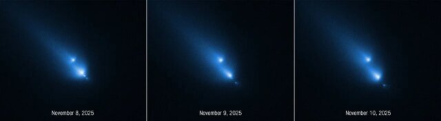 Em novembro de 2025, um cometa começou a se desintegrar em pedaços após um encontro próximo e acalorado com o Sol. Numa reviravolta do destino, o telescópio espacial Hubble estava a observar o cometa enquanto este se separava, captando a sua morte numa série de imagens.