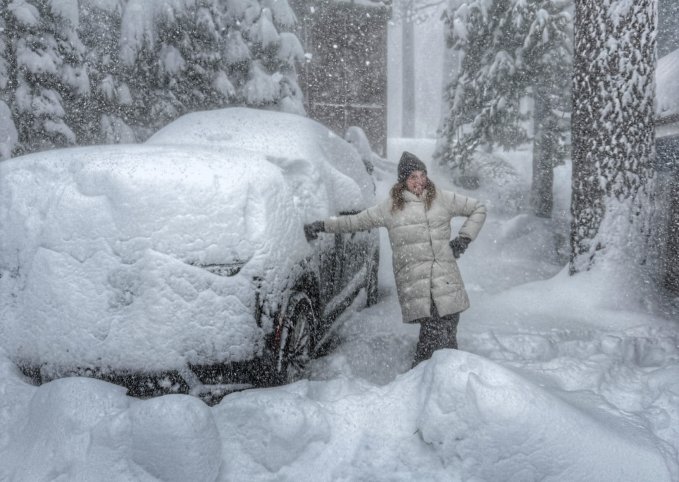 Também ajustei ao tamanho. No final da semana passada eu tinha parado de dizer “sinto muito” para quem estava esperando por mim para descobrir onde estacionar. Eu tinha parado de me importar com o que dizia sobre mim, o fato de estar dirigindo um carro cuja filosofia de design é: o proprietário deste veículo não está esperando na fila. Caíram quase dois metros e meio de neve, precisávamos de mantimentos e era eu quem estava com o tanque, idiotas! Eu também podia sentir meu marido caindo no carro.