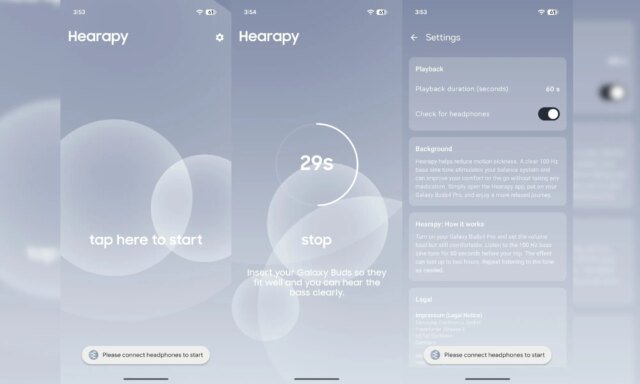 A gigante da tecnologia coreana lançou discretamente um aplicativo gratuito chamado Hearapia (parece uma combinação de audição e terapia) para combater o enjôo por meio da audioterapia. O conceito é bastante simples. Você abre o aplicativo, coloca os fones de ouvido e deixa tocar.