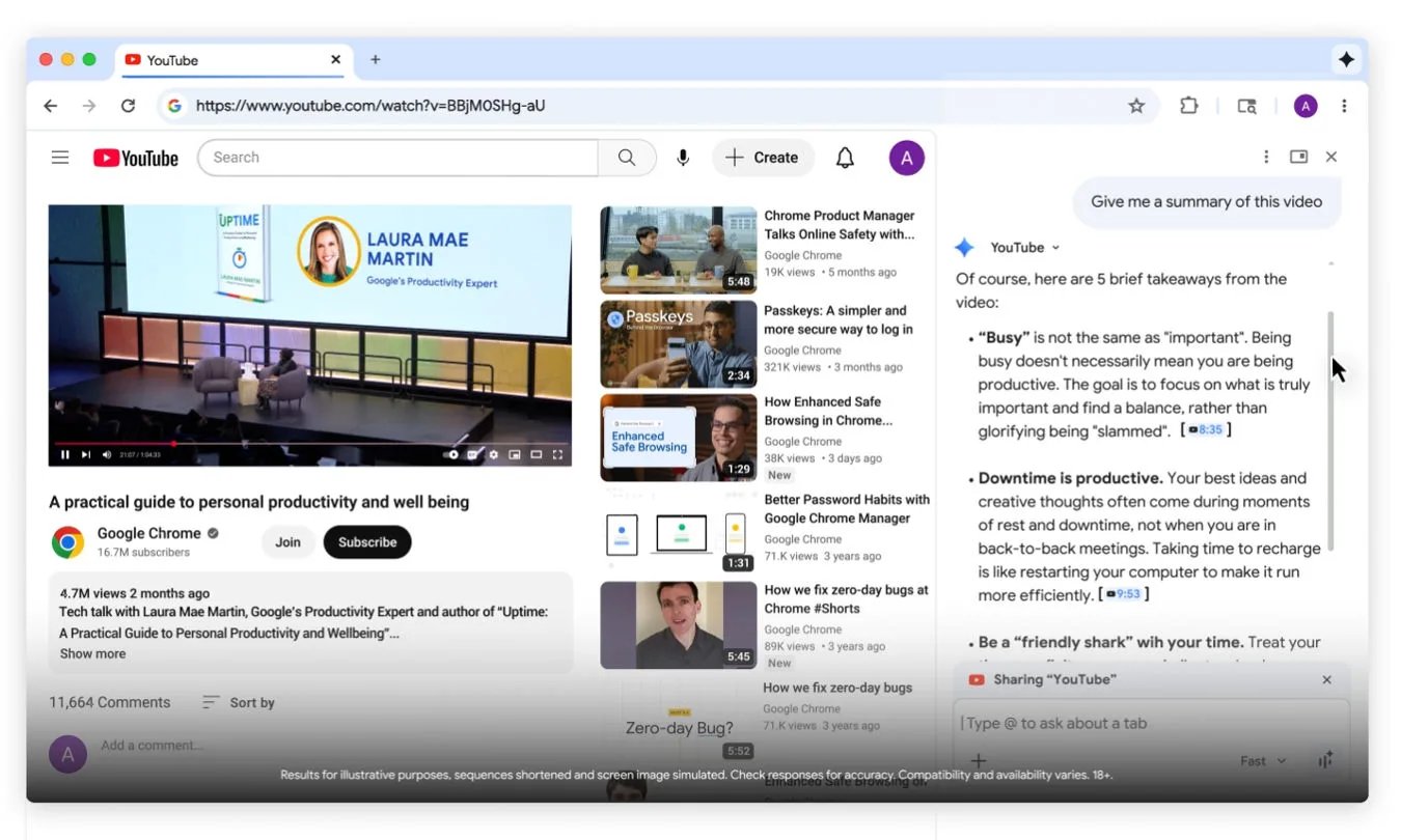 O assistente é executado no Gemini 3.1 e fica em um painel lateral para que você possa continuar navegando enquanto pede ajuda. Precisa resumir um artigo denso? Basta perguntar. Quer saber se você pode tornar essa receita vegana? A IA pode descobrir isso. Ele pode até recuperar páginas que você visitou anteriormente, o que pode finalmente permitir que você feche as guias que você acumulou por semanas.