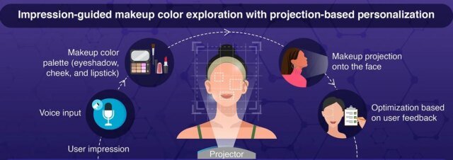 Cientistas do Instituto de Ciência de Tóquio criaram uma tecnologia experimental que usa inteligência artificial com mapeamento de projeção para simular maquiagem em um rosto real.