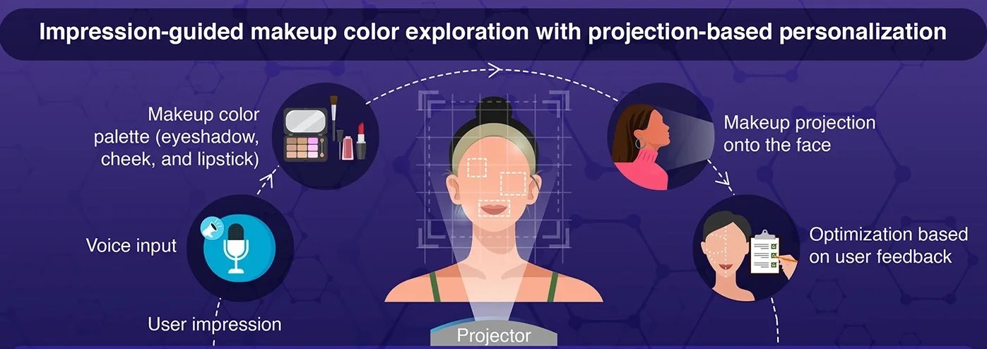 Em vez de aplicar cosméticos fisicamente ou depender de filtros típicos de realidade aumentada, o sistema irradia a maquiagem diretamente na pele do usuário, permitindo-lhes ver como ficaria sob iluminação real.