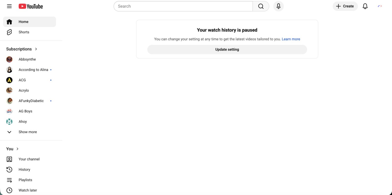 Essa solução, no entanto, parece estar falhando. Na semana passada, uma onda de usuários do YouTube relatou que, com o histórico de exibição pausado, a plataforma parou totalmente de servir recomendações da página inicial – substituindo seus feeds por um prompt para reativar o histórico de exibição para que o YouTube possa “preenchê-lo”.