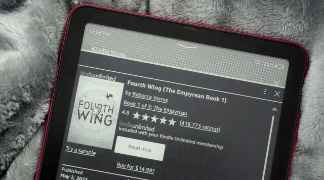 O Kindle Unlimited inclui best-sellers como as séries Fourth Wing e Hunger Games e romances de autores populares como Colleen Hoover e Frieda McFadden, entre muitos outros.