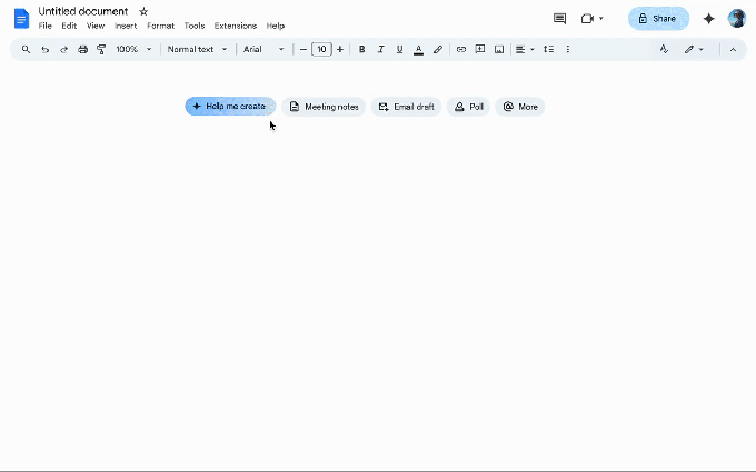 Há também uma nova ferramenta “Ajude-me a criar”. Você pode descrever o que deseja, como um boletim informativo ou um relatório, e o Gemini extrairá o contexto do seu Drive, Gmail e Chat para gerar um primeiro rascunho como um ponto de partida sólido.