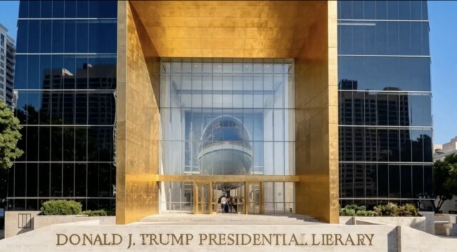 🚨 PRIMEIRA VISUALIZAÇÃO: A Biblioteca Presidencial Donald J. Trump está oficialmente aqui.