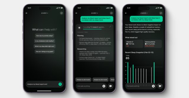 “A maioria das ferramentas de IA hoje analisam seus dados retrospectivamente”, disse ele. “O Jade foi desenvolvido para reagir à sua saúde em tempo real e mostrar ações que os usuários podem realizar.”