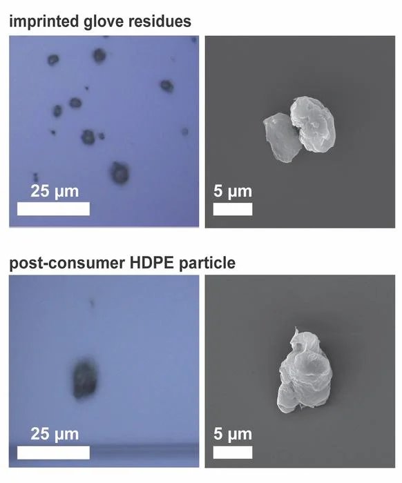 Pesquisadores da Universidade de Michigan (UM) identificaram um erro surpreendente e possivelmente um pouco embaraçoso que pode estar contribuindo para superestimativas dramáticas do conteúdo de microplásticos em vários estudos: partículas de detritos derramadas pelas luvas padrão de látex e nitrila que os cientistas normalmente usam no laboratório. Minúsculos sais semelhantes a sabão, chamados estearatos, revestem estas luvas como restos do processo de fabrico, de acordo com o novo estudo da UM, onde podem ser eliminados, criando milhares de falsos positivos por milímetro quadrado (ou cerca de um milésimo de polegada quadrada).