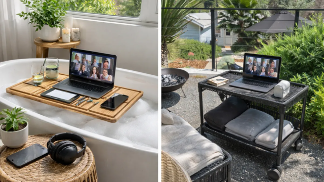 Forneci algumas imagens de espaços em casa que gostaria de trabalhar e perguntei alguns Ferramentas de IA para gerar uma configuração que tornaria meu espaço de trabalho totalmente móvel – uma configuração de trabalho em casa que me acompanha quando eu quiser, caso eu queira participar de uma reunião do Teams na banheira ou no quintal.